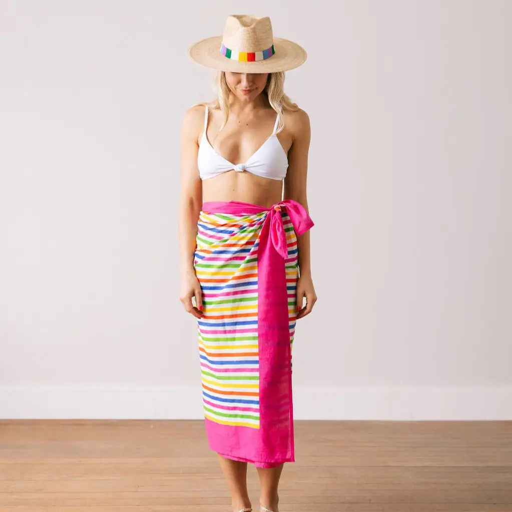 The Andie Rainbow Stripe Sarong, made from lightweight cotton, is a versatile beach cover-up that can be worn as a skirt, dress, or scarf. Stay stylish and comfortable with this easy-to-pack summer essential. Details and Care: Very lightweight 100% cotton Care Instructions: Hand wash separate in cold water