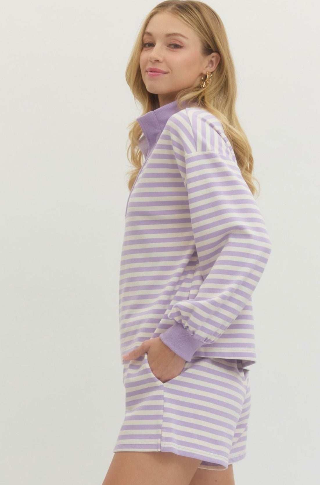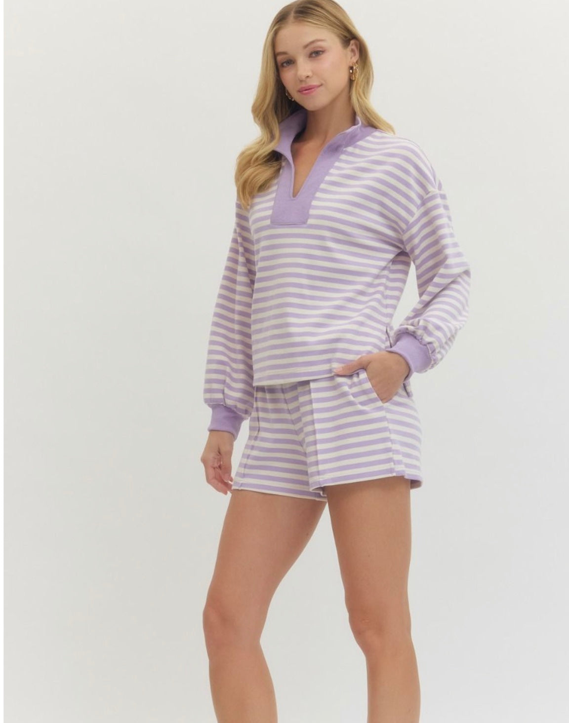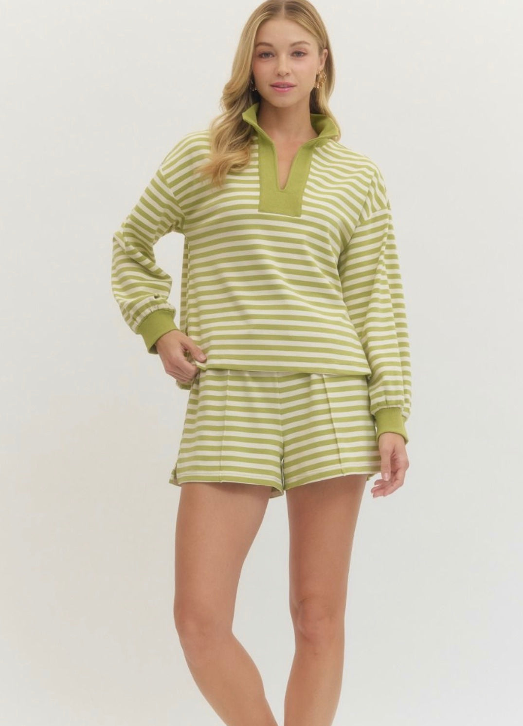 Long Sleeve Stripe Knit Set with tie shorts- elevate your everyday casual look!