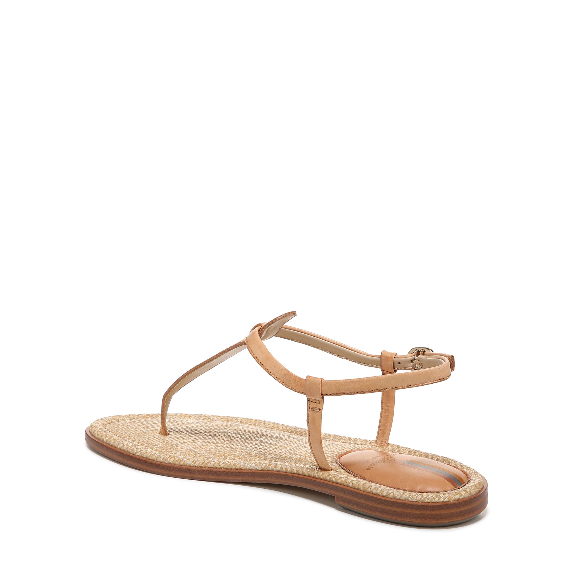 The iconic Gigi Thong Sandal by Sam Edelman is a warm-weather must. This women's thong sandal has an adjustable ankle strap and signature padded sock for all-day comfortable wear. Whether you're searching for the perfect leather thong sandals to wear on your next beach trip, or a stylish flat thong sandal to compliment your summer office look, the Gigi has what you need! The classic thong style is Palm Beach chic with everything from white jeans to a printed sundress.