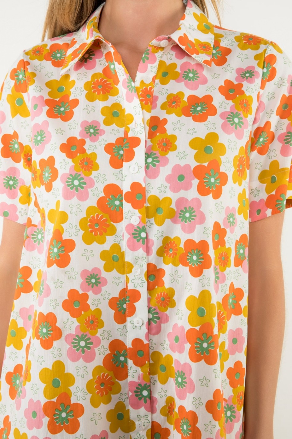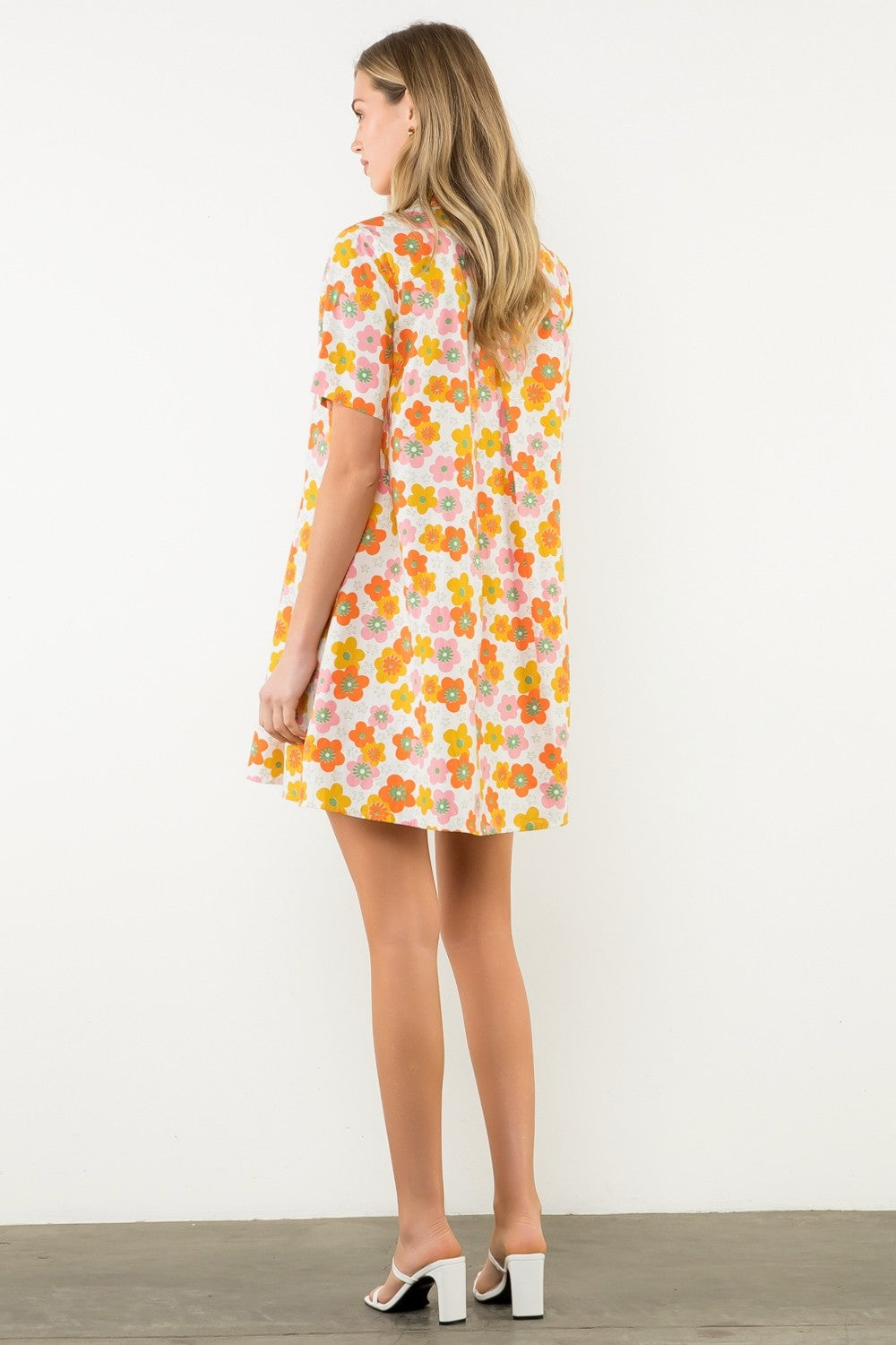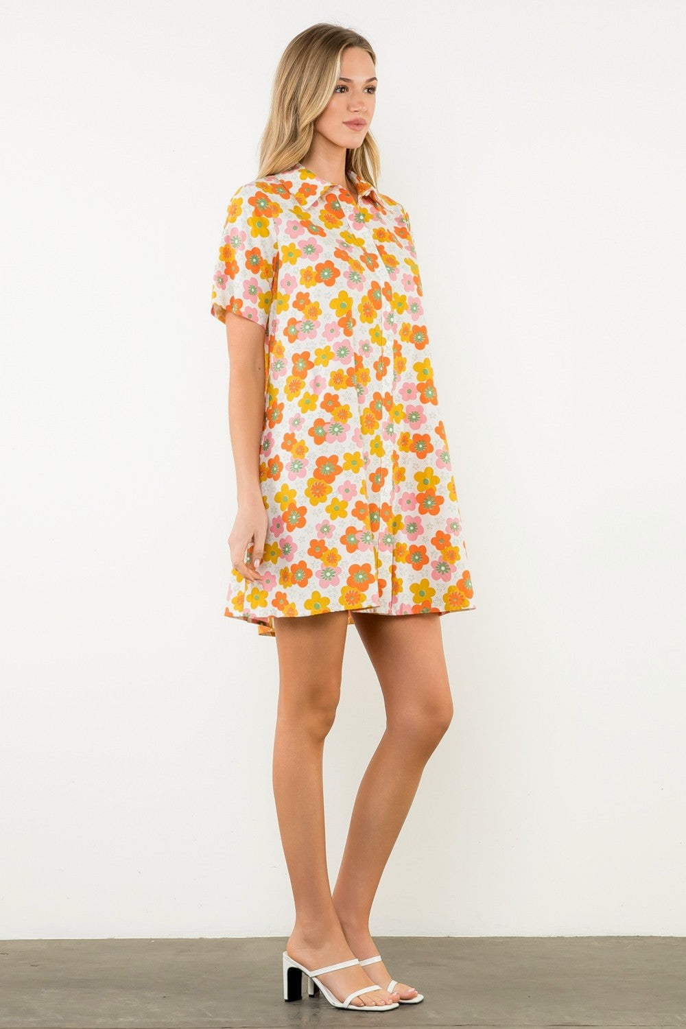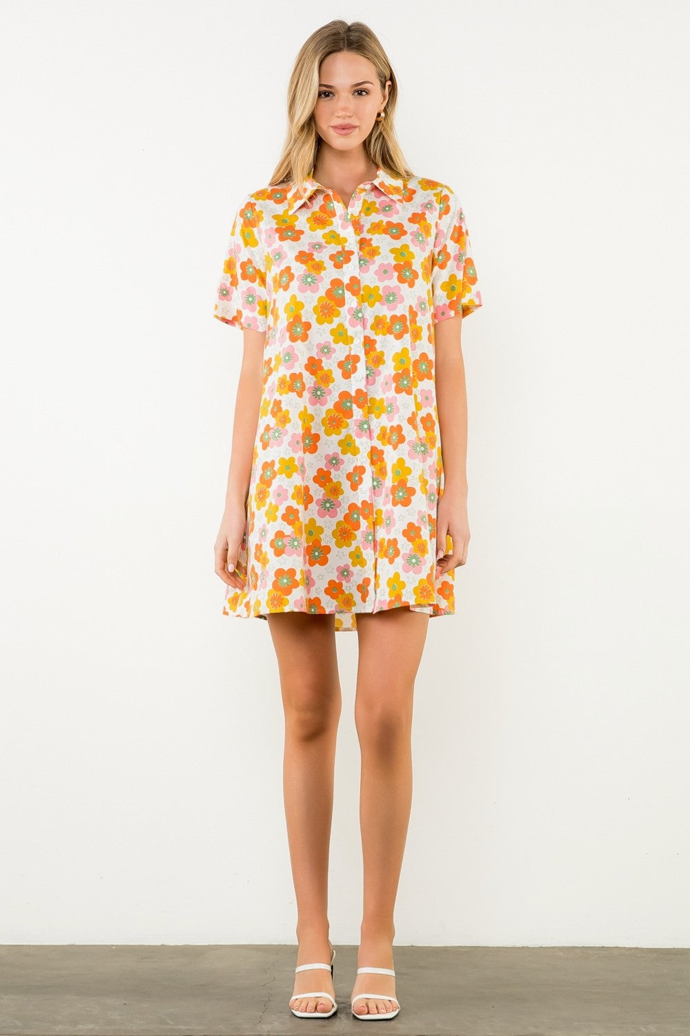 Mod Floral Print Shirt Dress style featuring a button front. Cute Swing Style Fit- Throw on with your favorite flats for an everyday chic look!