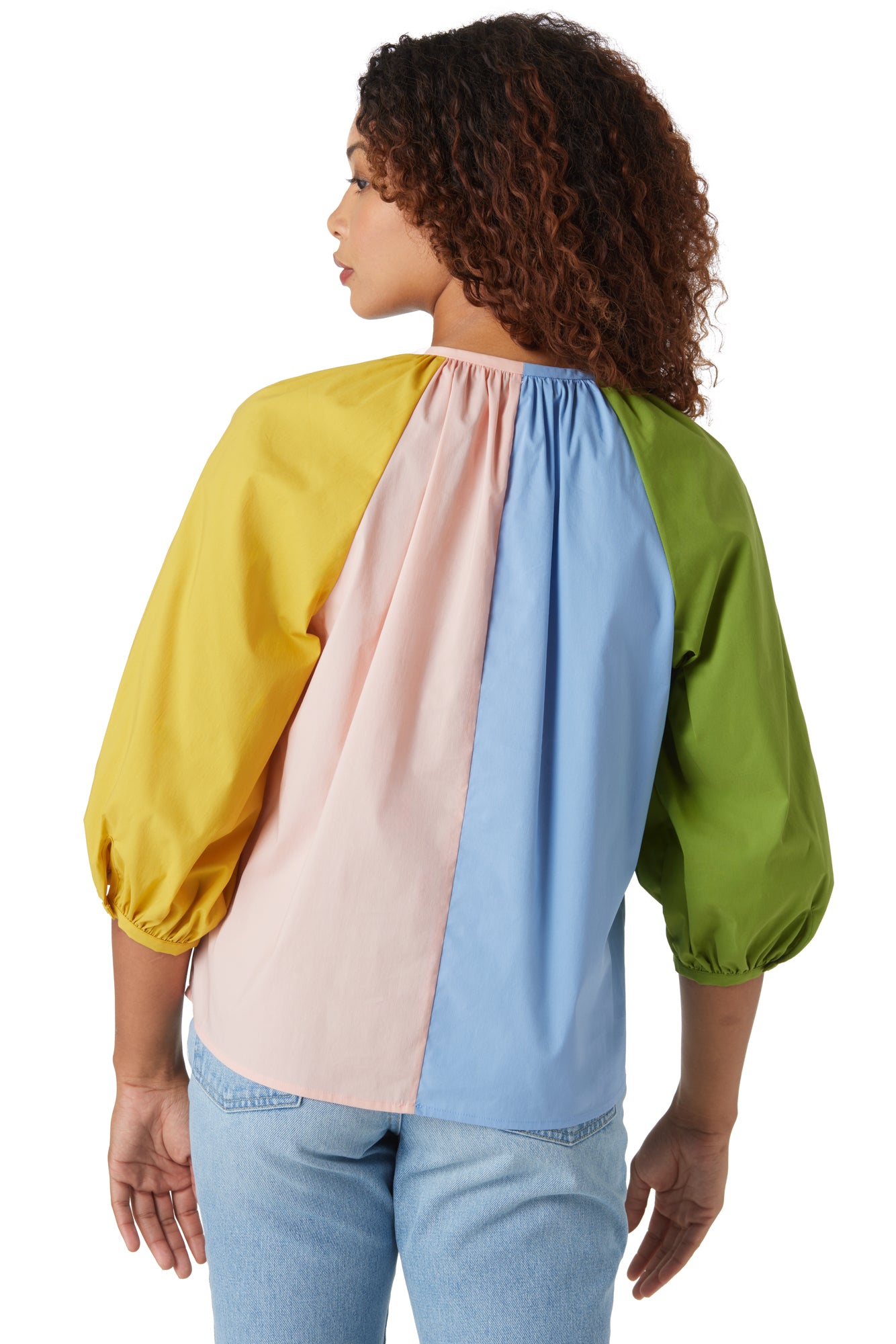 CROSBY's Quarter Sleeve, Button-Up |Spring Pastels| Color Block Top is a playful addition to your wardrobe.
