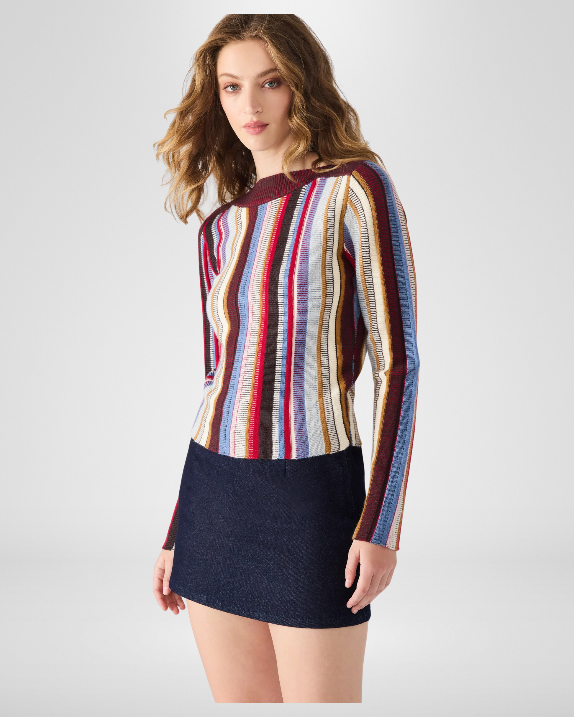 Long Sleeve Stripe Sweater- Boat neck and fitted